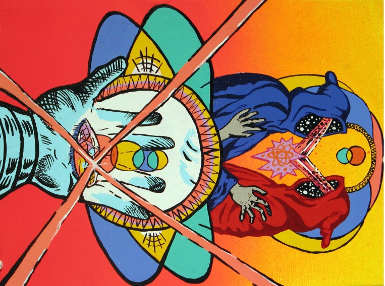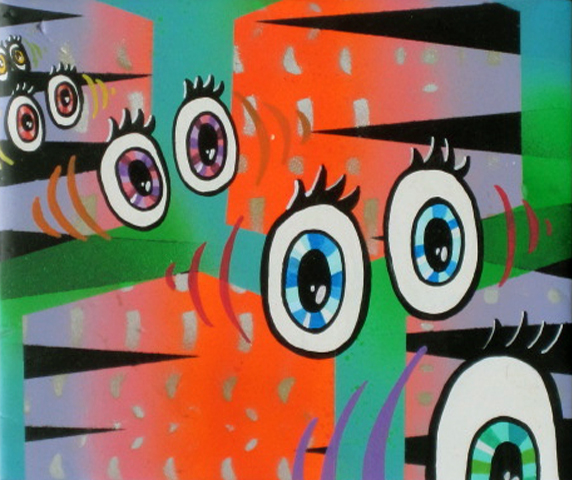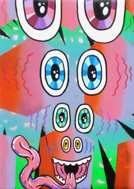 Wandering Eyes. 12″x9″ oil and enamel on wood. 2012.Eye Popping. 12″x9″ oil/enamel on wood. 2012Jeepers Creepers. 9″x12″ oil/enamel on wood. 2012Crystals I. 6″x9″ oil/enamel on bamboo plywood.2012