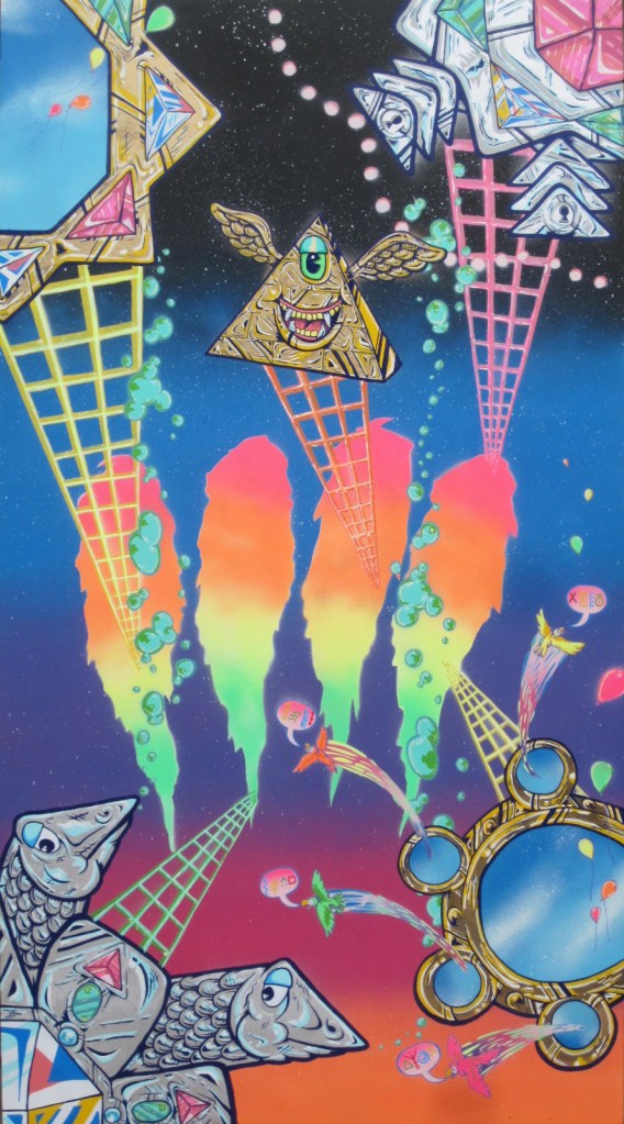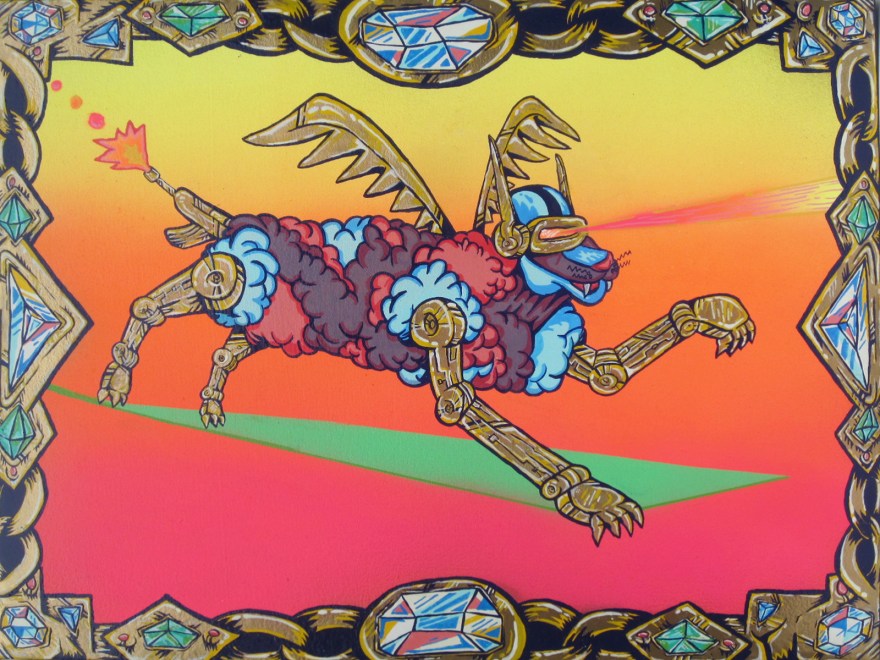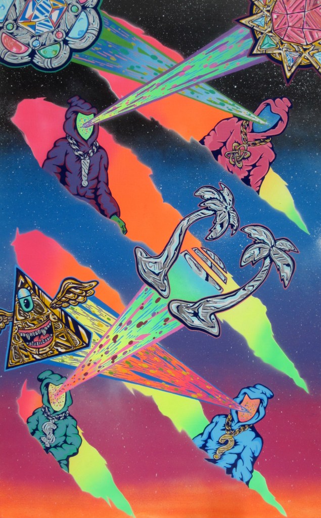 30″x12″ oil and enamel on canvas. 2012Intergalactic. 60″x33″ , Oil/enamel on panel, 2013Xtreme Power 30″x22″ Oil/Enamel on Canvas.2013Luxury Monster 24″x18″. Oil/Enamel on canvas.2013.
